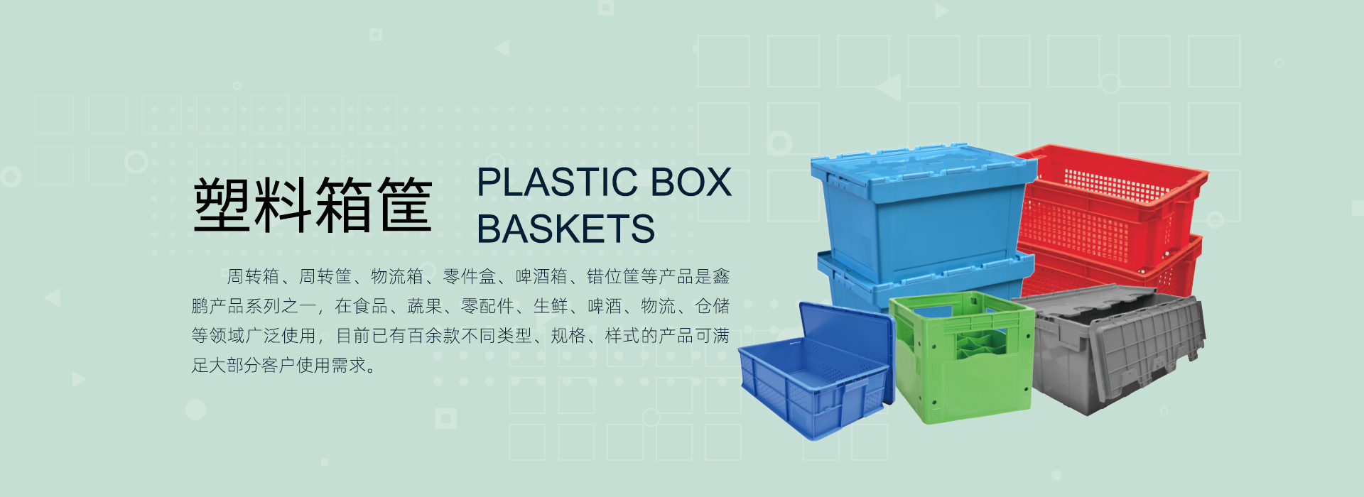 • 卡板箱多用于蔬果存儲,液體存放,零配件存儲等;大型卡板箱有折疊封閉型、折疊網狀型、大型封閉箱、大型網狀箱;可加配箱蓋,滾輪、閥門(封閉型)。